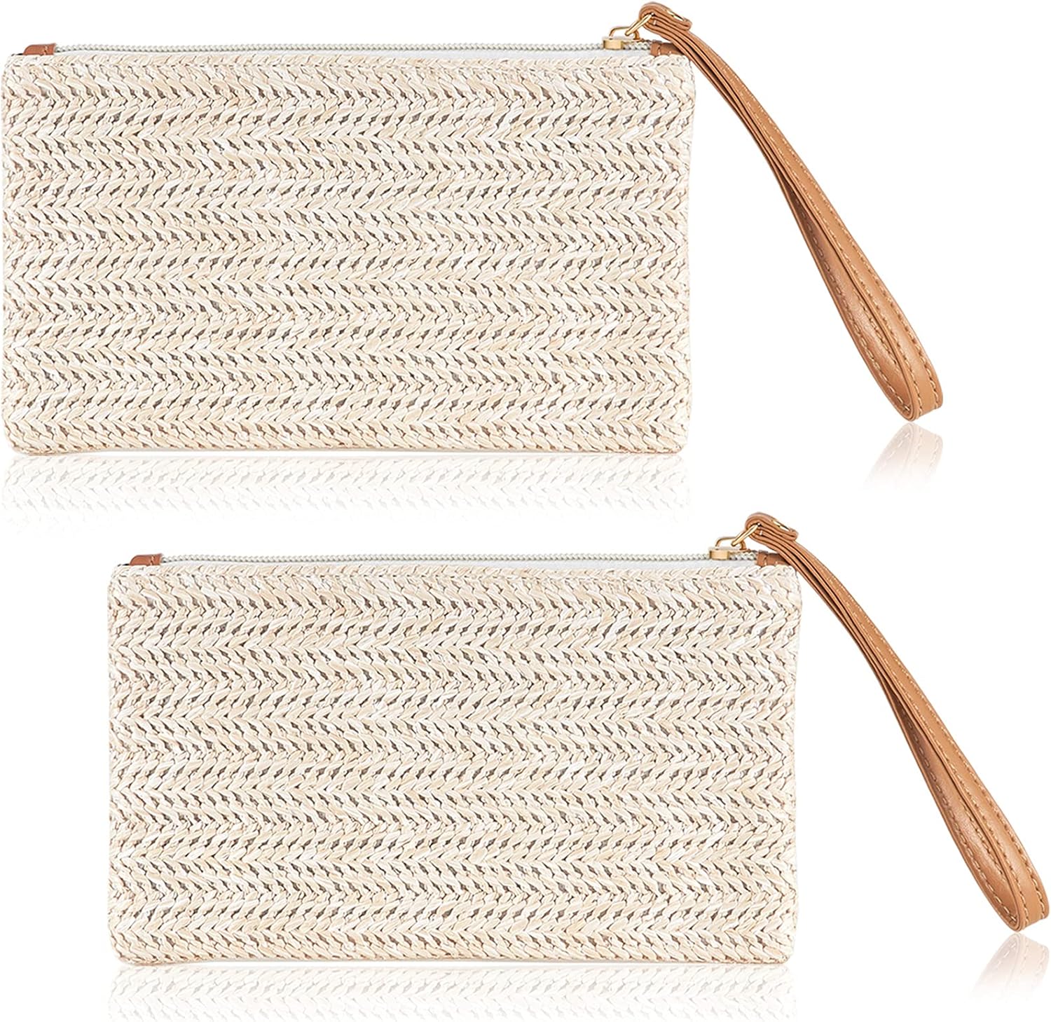 2Pcs Straw Clutch Purse Set – Boho Beach Handbags for Women