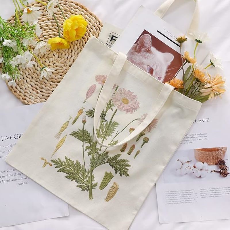 4-Piece Floral Canvas Tote Bag Set – Reusable Aesthetic Shopping Bags