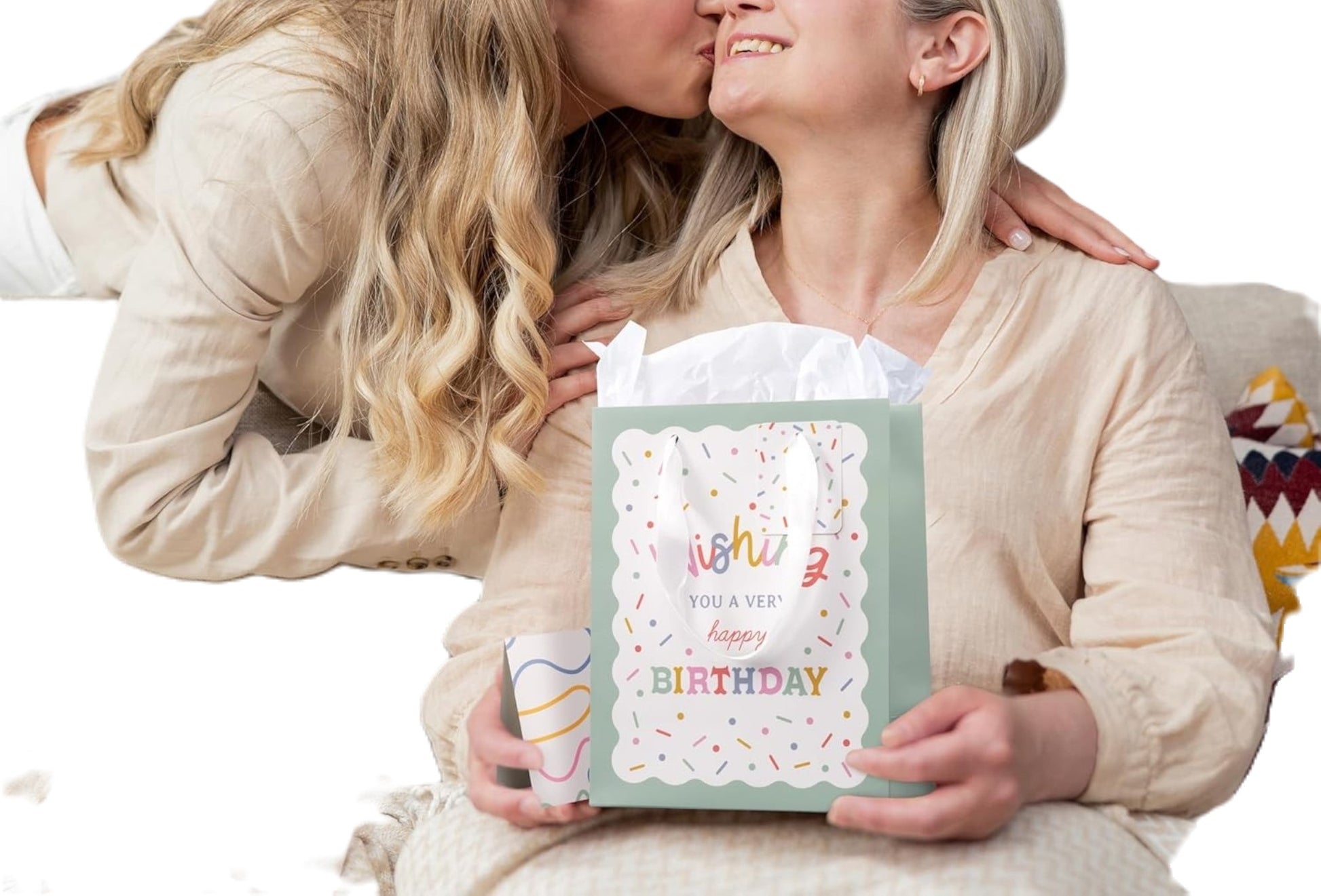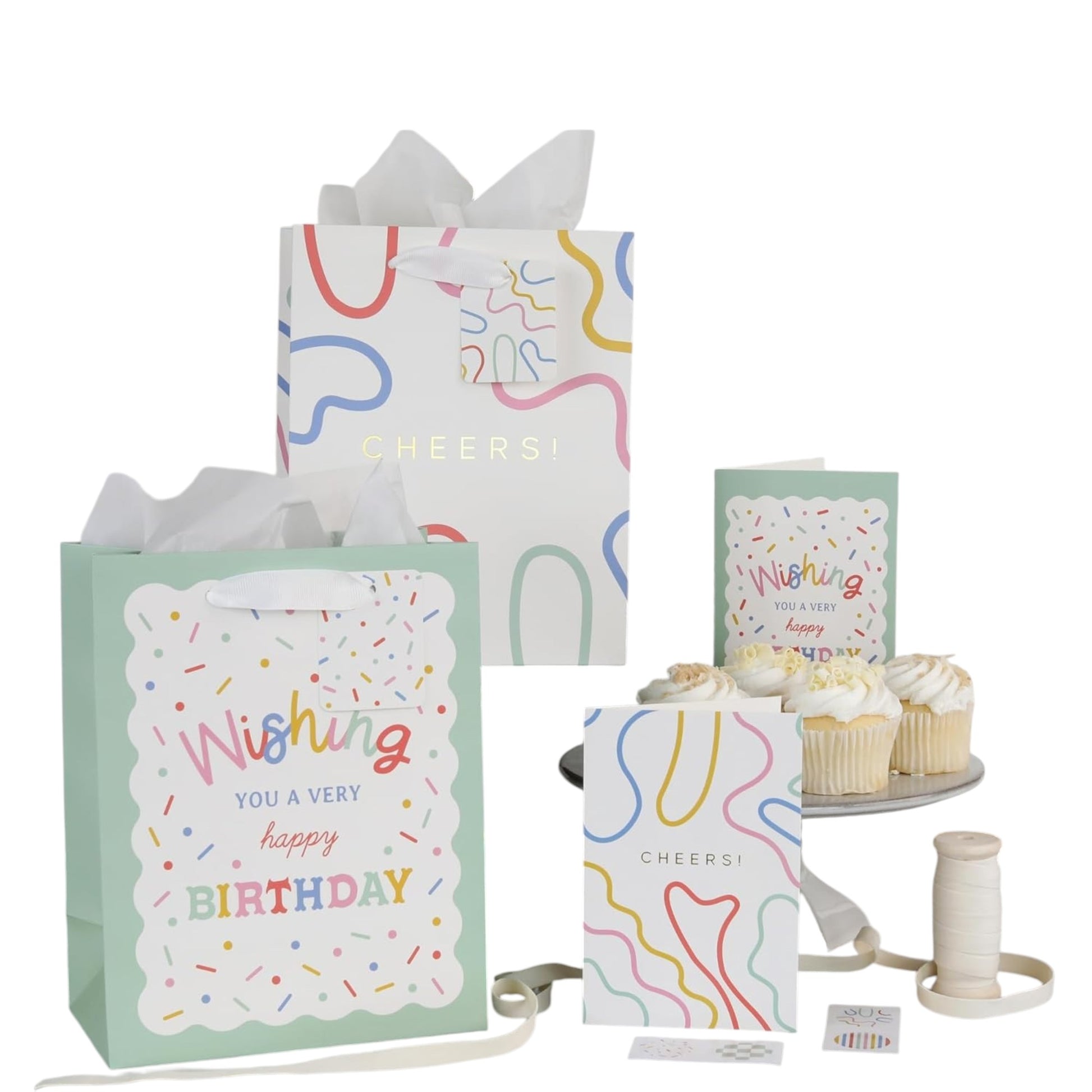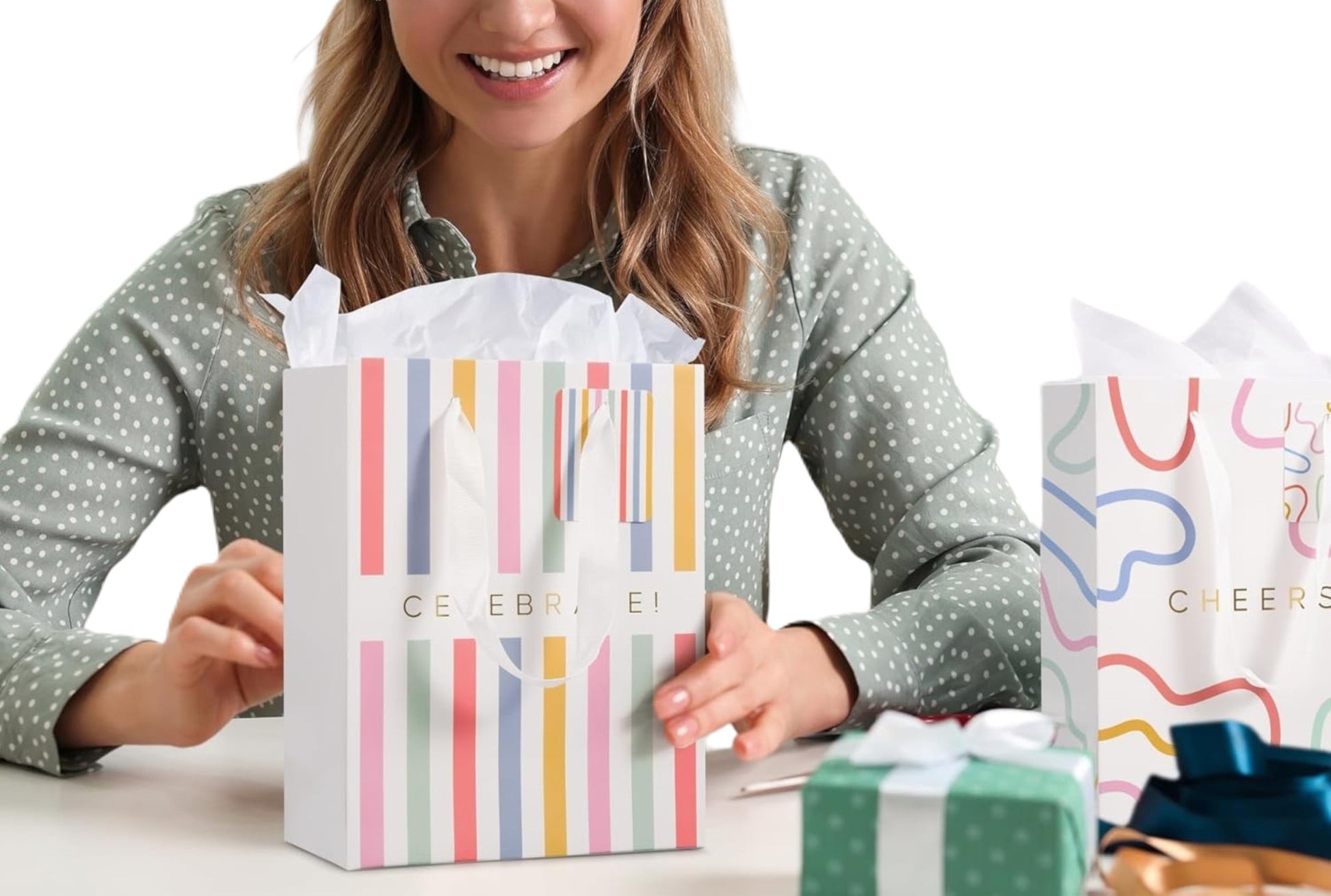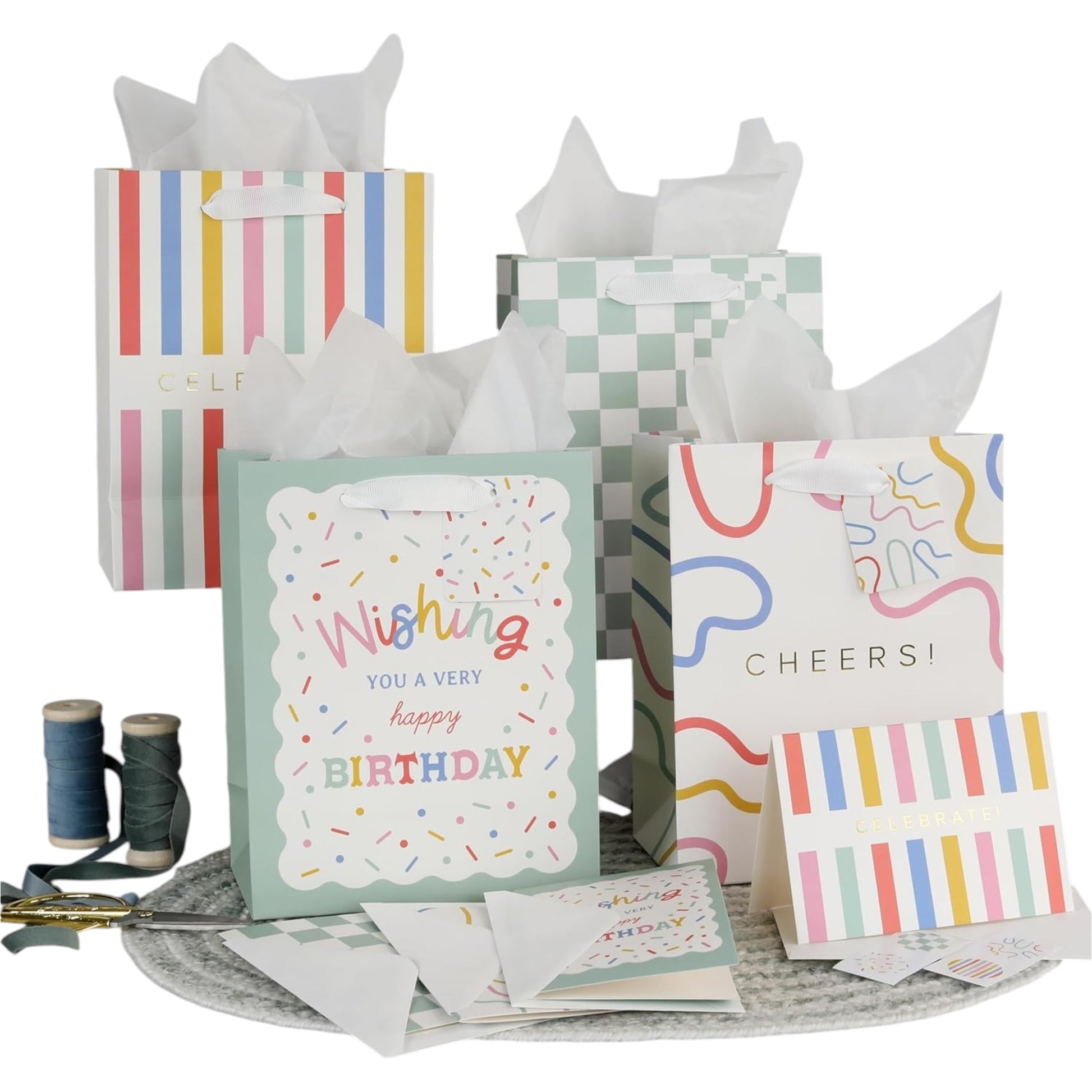 Convenient Gift Set: 4 bags, 4 cards with envelopes, stickers & wrapping paper – wrap gifts fast and beautifully.