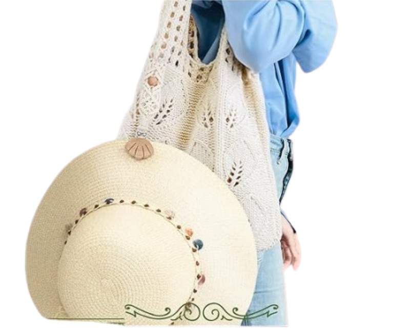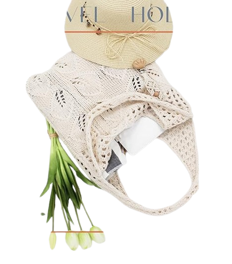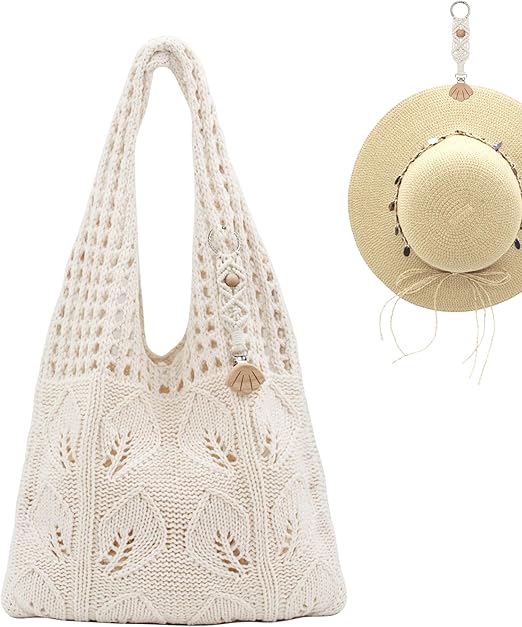Crochet Tote Bag with Macrame Hat Clip-Cute Summer Beach Bag for Women Travel
