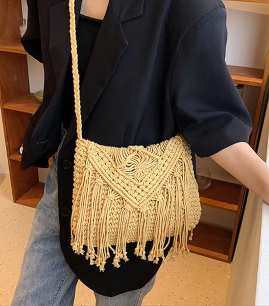 Stylish Tassel Hobo Bag: Made from high-quality, durable polyester with a trendy tassel design, perfect for summer outfits.