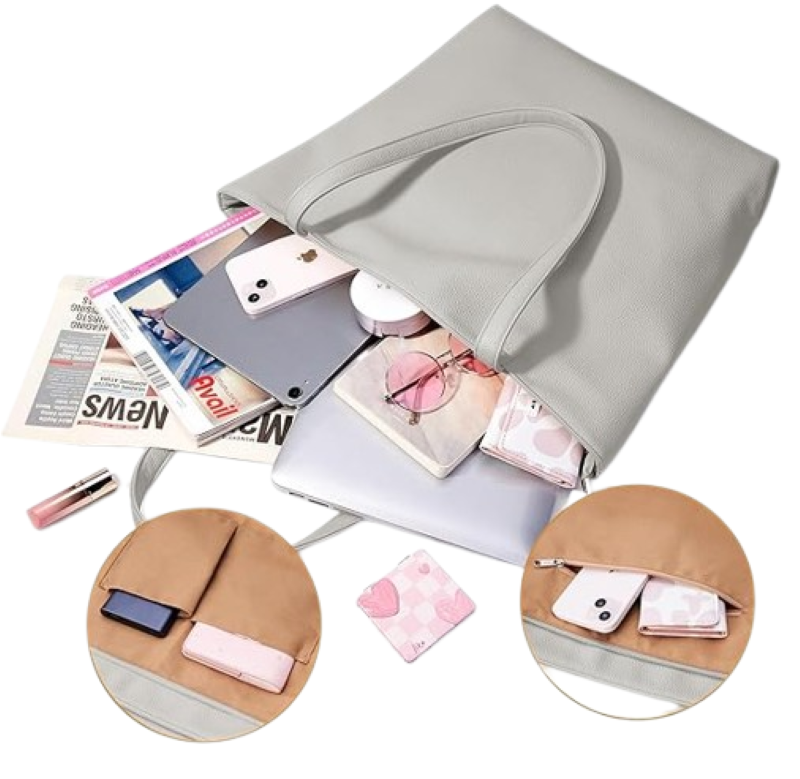 Soft PU Leather Tote Bag for Women - Large Casual Shoulder Handbag with Zipper