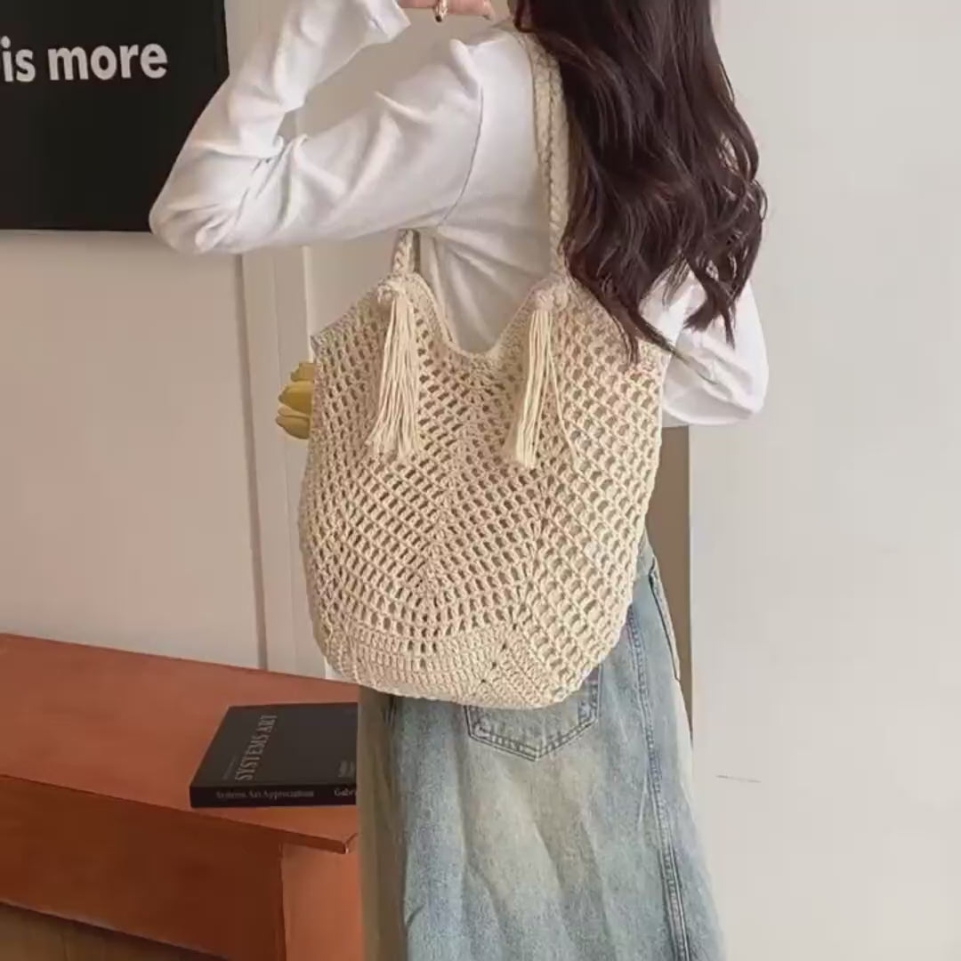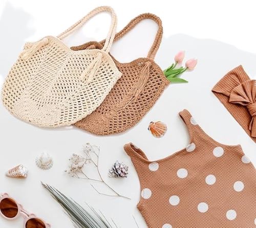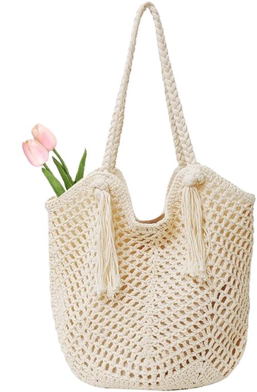 Breathable Crochet Tote Bag: Features a polyester lining to prevent item loss, perfect for beach trips or shopping.